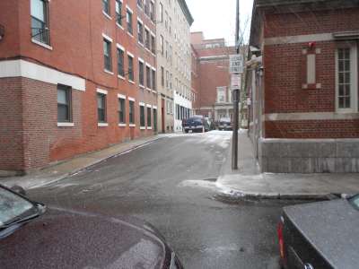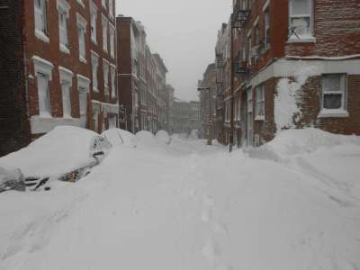 On The Prado (Paul Revere Mall) at 1:15 pm There is About an Inch on the Ground