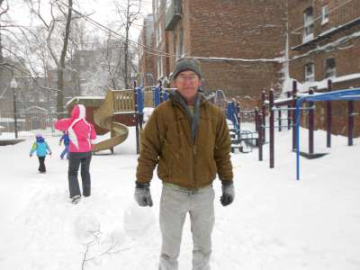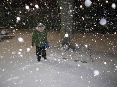 At 3:30 the whole family headed out to see what was going on. There was 3 or 4 inches on the ground, the wind was howling and it was cold.