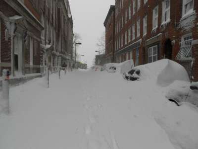 The Storm howled outside the windows all night long. When we got up, what we could see out the windows from our 4th floor unit didn’t look too bad. Our thermometer read 10 degrees and the wind was still blowing, so we got all bundled up to check out the neighborhood.
